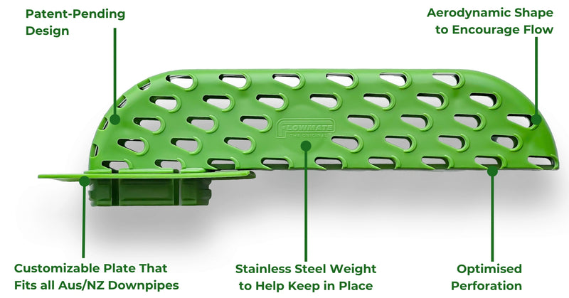 Flowmate’s dropper (70mm × 40mm) is designed to fit most standard residential downpipes in Australia and New Zealand — including 100×50mm rectangular and 90mm round downpipes.
